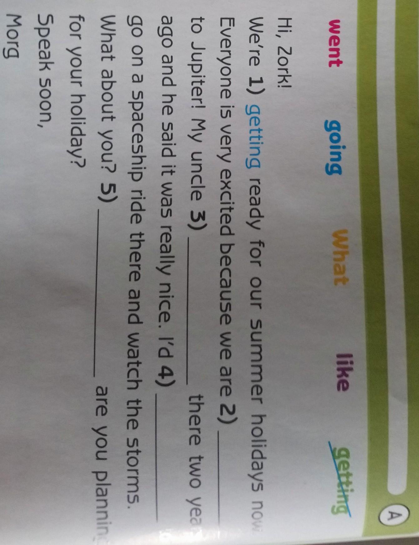 2 - going 3 - went 4 - (точно)like 5 - (точно) What