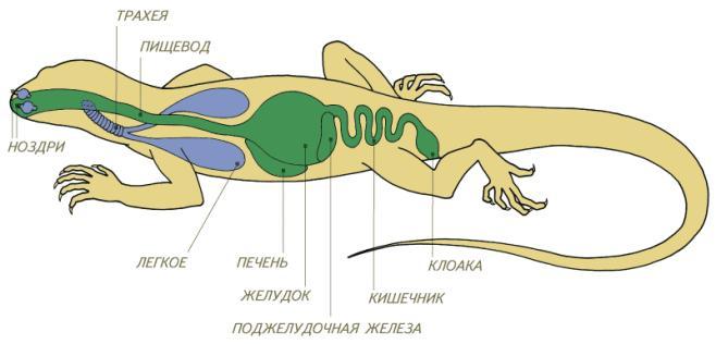 1-рот,2-глотка,3-пищевод,4-желудок,5-кишечник,6-клоака.