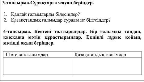Кестені толтырыңдар. Бір ғалымды таңдап,