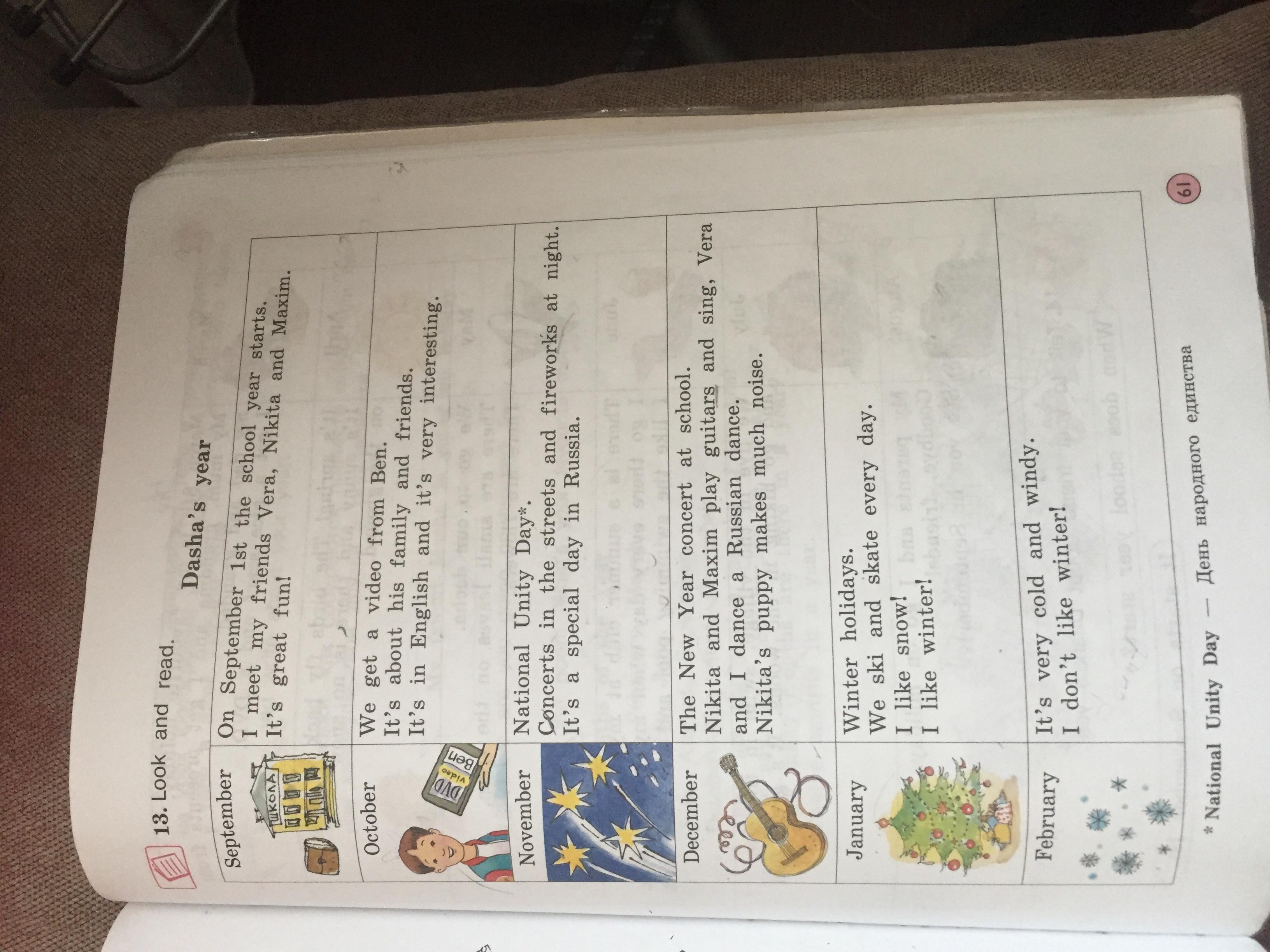 Концерт на Новый год в школе. Никита и Максим играли на гитаре и пели, Вера и я танцевали русские танцы. Щенок Никиты много шумел.