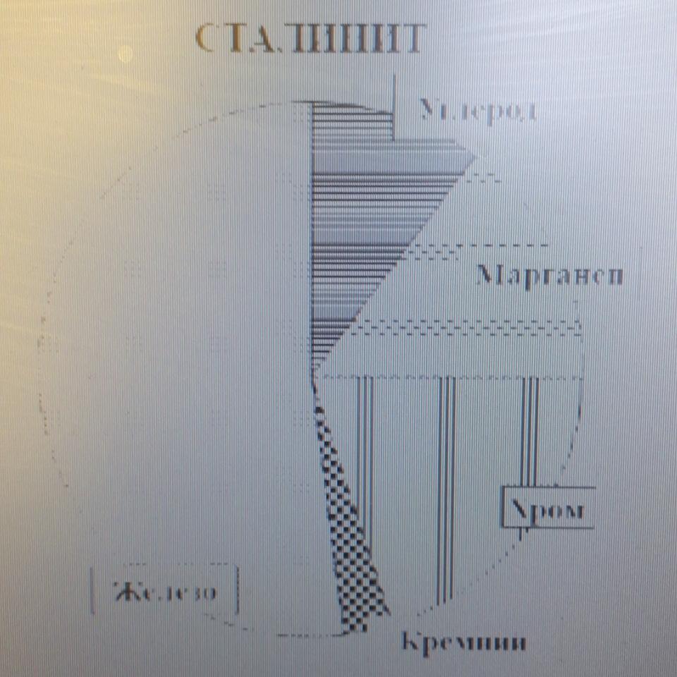 Сплав — это материал, который образуется в результате затвердения расплава двух или нескольких отдельных веществ. Сталинит — порошкообразный сплав углерода, хрома, марганца, кремния и железа. Круговая диаграмма показывает долю (по массе) каждого вещества в сталините.
