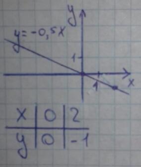 При x=2, y = -0,5·2 = -1; точка (2;-1).