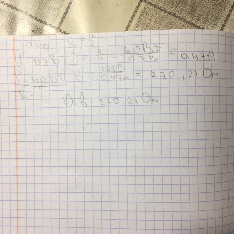 На лампочке накаливания написано «127 В; 60 Вт». Вычисли электрическое сопротивление лампочки.