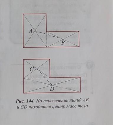 поясните метод определения центра масс фигуры, изображённой на картинке. какое действие необходимо ещё выполнить, чтобы определить положение центра масс?