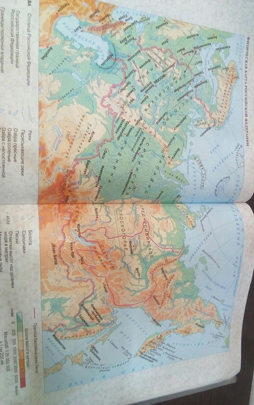 (физическая карта РФ) выписать в тетрадь равнины и горы России.