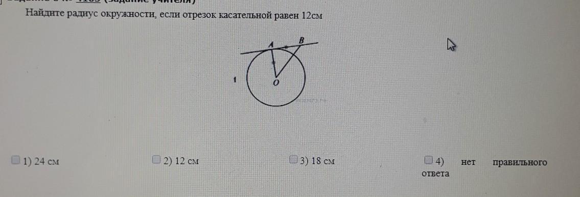 Найдите радиус окружности, если отрезок касательной равен 12 см.