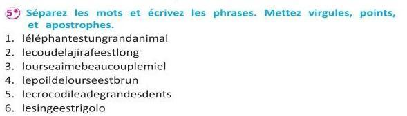 Сделайте по Французскому языку 5 класс. 5*) Séparez les mots et écrivez les phrases. Mattez virgiles, points, et apostrophes.
