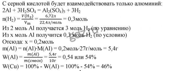 Смесь опилок меди и алюминия массой 10г обработали разбавленной серной кислотой.