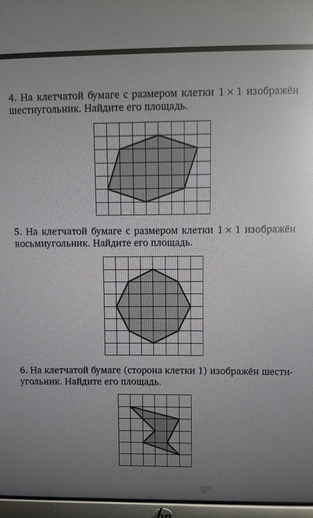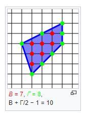 Чтож, для тех, кто совсем "ноль" в геометрии, или формулы площадей фигур вылетают из головы, темболее это задание из ЕГЭ, всякое может случиться - есть надежный, но не самый рациональный метод. Для этого не нужно знать формул вычисления площадей, в этом вся прелесть данного варианта решений. Будем пользоваться формулой Пика. Сам ответ я вам вычислять не стану, попробуйте самостоятельно. Обратите внимание на вложенную картинку. Смысл в том, что вам нужно посчитать количество "точек пересечения клеток" внутри фигуры, и ее граней. Посмотрите на картинку, и все сразу станет понятно. Этот способ 100%-й но нужно внимательно считать. P.S. В картинке посчитана непосредственно сама площадь заданной фигуры.