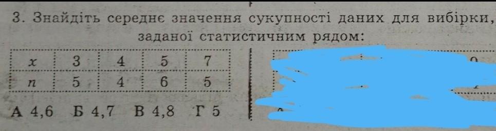 Среднее значение до ях и n: 4,75+5=9,75:2=4,875 ( ответ в) 4,8)
