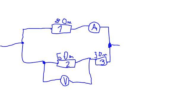 На рисунке предоставлена схема участка электрической цепи. Воспользовавшись данными рисунка, определите показания амперметра, если вольтметр показывает 5 В.