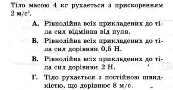 Тіло масою 4 кг рухається з прискоренням 2 м/с2. Відповідь поясніть