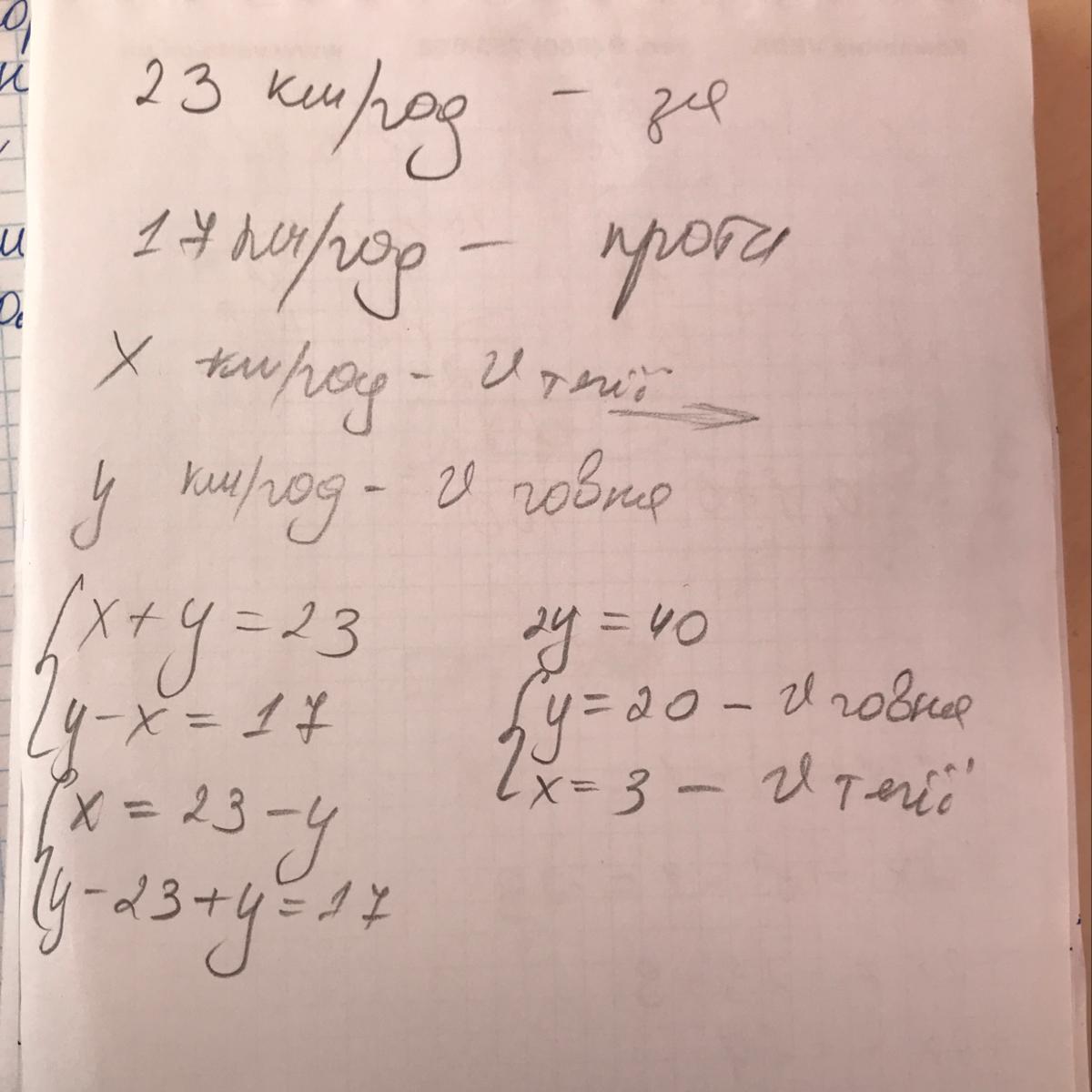 проти течії — 17 км/год. Знайдіть власну швидкість