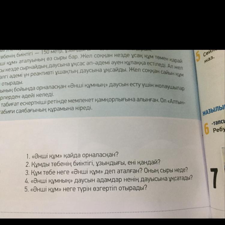 4. Құм суынып жел әсерінен қозғалысқа келген кезде, одан кәдімгі сырнайдан шыққан таза ән ырғағына ұқсас үн естуге болады; егер жел күшейсе, құмнан шыққан реактивті ұшақтың гүрілі сияқты дауысқа ұласады.