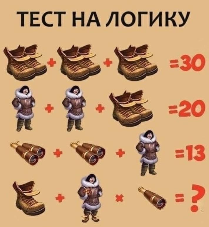 2 бинокля и 1 человек =13 ⇒ 1 бинокль составляет (13-5):2=4.