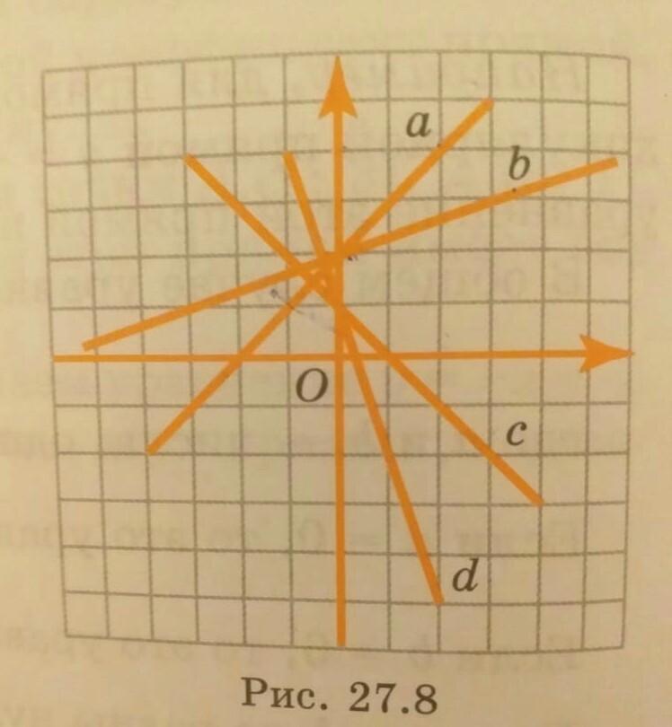 Найдите угловые коэффициенты прямых,изображенных на рисунке 27.8