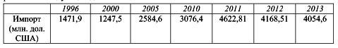 Постройте столбчатую диаграмму импорта продукции Донецкого региона по следующим данным