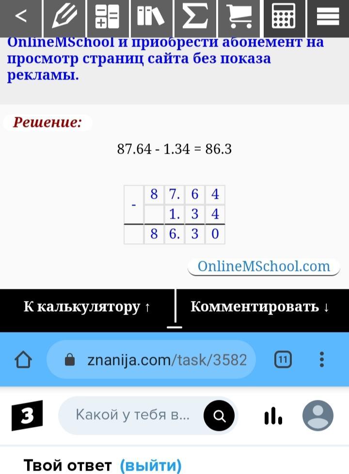 50 БАЛЛОВ СРОЧНО! Найдите значение выражения: 87,64 – 1,34 * (290,4 : 4,8) =?