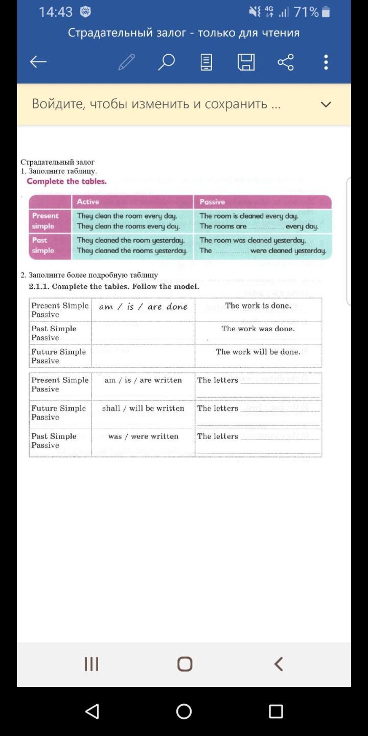 PRESENT SIMPLE PASSIVE: The letters are written.
