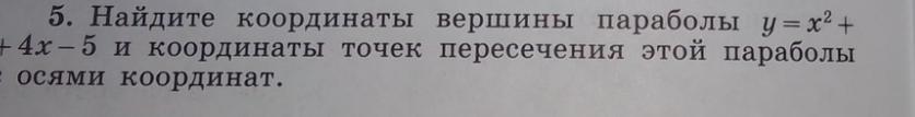 Объяснение:y=x²+4x-5=(x+2)²-4-5=(x+2)²-9, V(-2,-9)