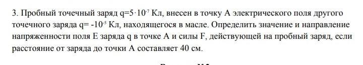 точечного заряда q= -10 -5 Кл, находящегося в масле. Определить значение и направление