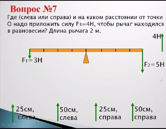 Где (слева или справа) и на каком расстоянии от точки О надо приложить силу F3=4H, чтобы рычаг находился в равновесии? Длина рычага 2 м. ПОЖАЛУЙСТА СРОЧНОО [детали есть на рисунке]