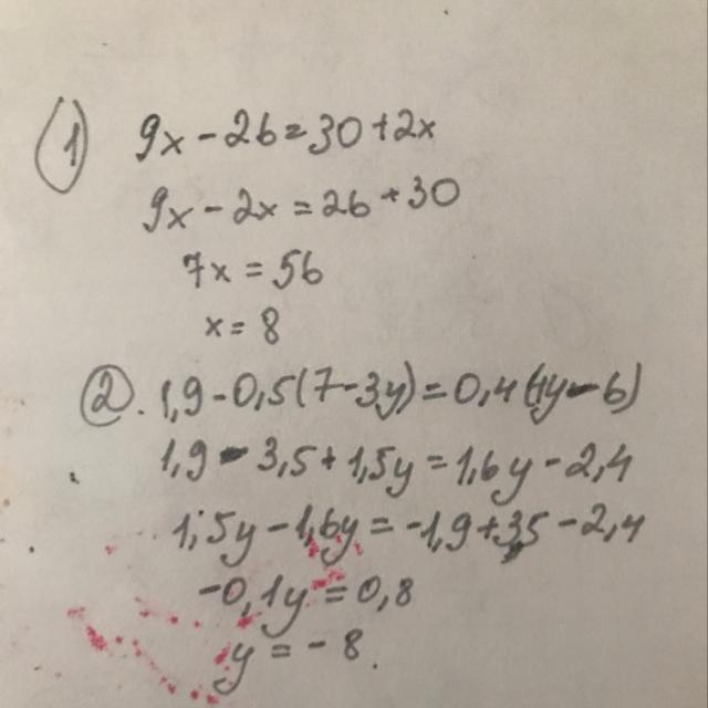 2. 1,9-0,5(7-3y)=0,4(4y-6)
