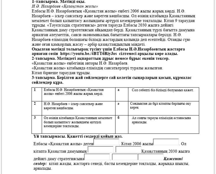 Елбасы Қазақстан жолы деген кітап жазды. Кітап 2006 жылы жарыққа шықты. Ол кітап Қазақстан дамуынын басты кезеңдеріне тоқталды. Қазақстанның 2030 жылға дейінгі стратегиясына арналады.