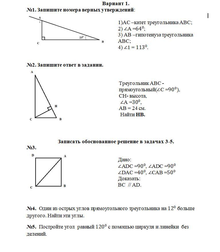 2) Сумма углов треугольника равна 180. Поэтому 180 - (90 + 23) = 67