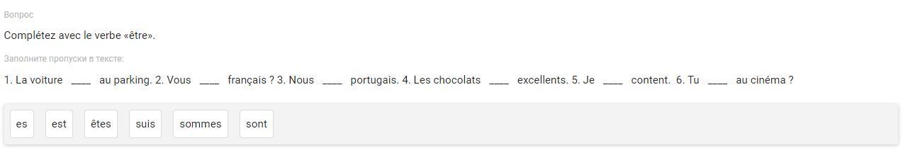 1. est 2. etes 3. sommes 4. sont 5. suis 6. es