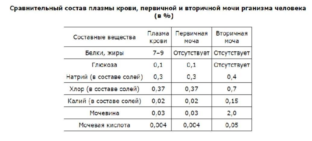 Пользуясь таблицей (таблицу прикрепила) «Сравнительный состав плазмы крови, первичной и вторичной мочи организма человека» и знаниями из области физиологии, ответьте на следующие вопросы.