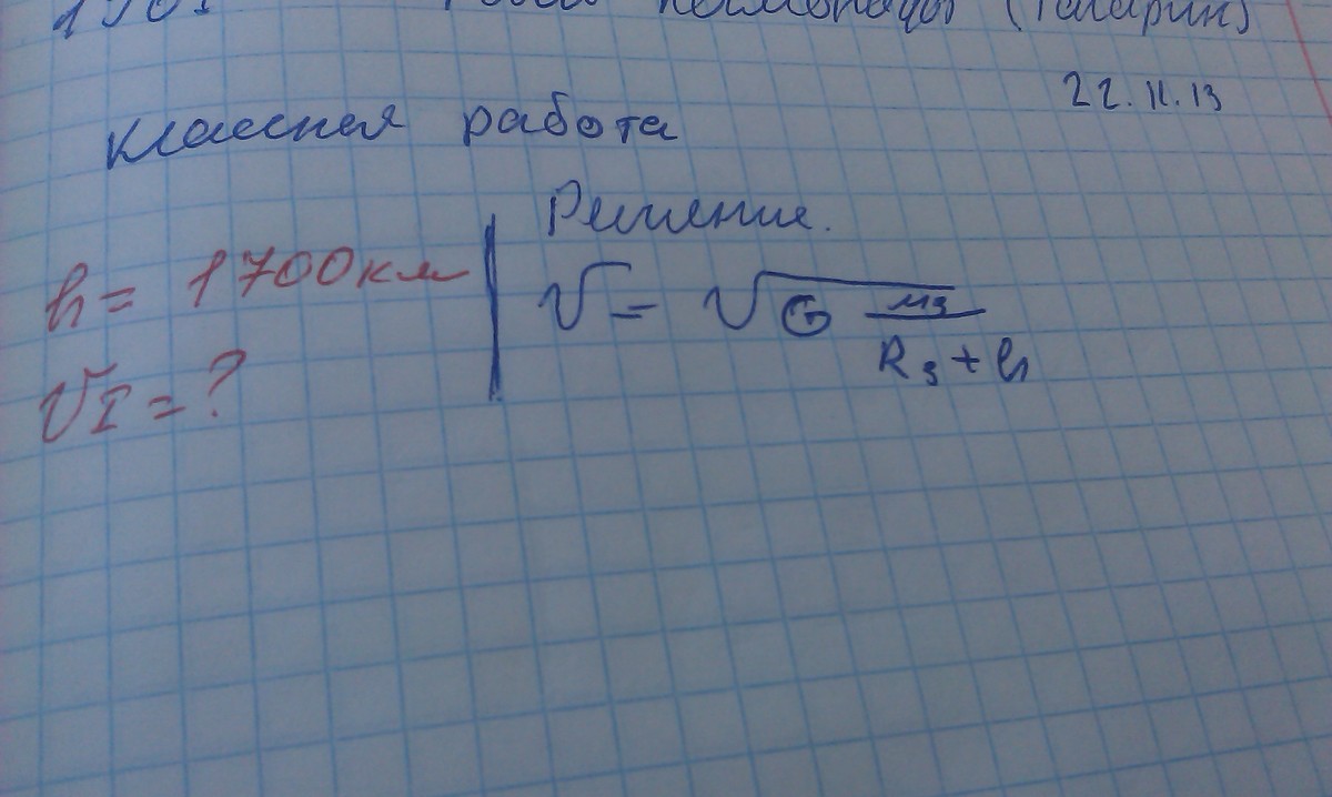 v=корень(G*M/(R+h))=корень(g*Rз^2/(Rз+h))=корень(9,81*6400000^2/(6400000+1700000))= 7043,231582 м/c ~ 7км/c