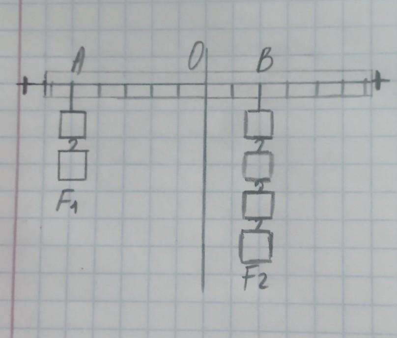 Найти момент силы F1 (см. рис) Вес каждого груза 1 Н, одно деление 1 см.