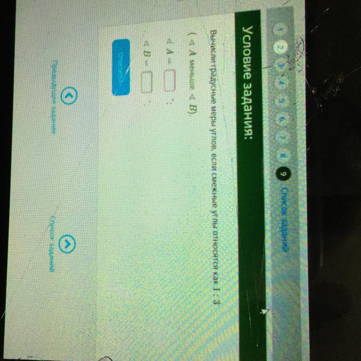 Вычисли градусные меры углов,если смежные углы относятся как 1:3.