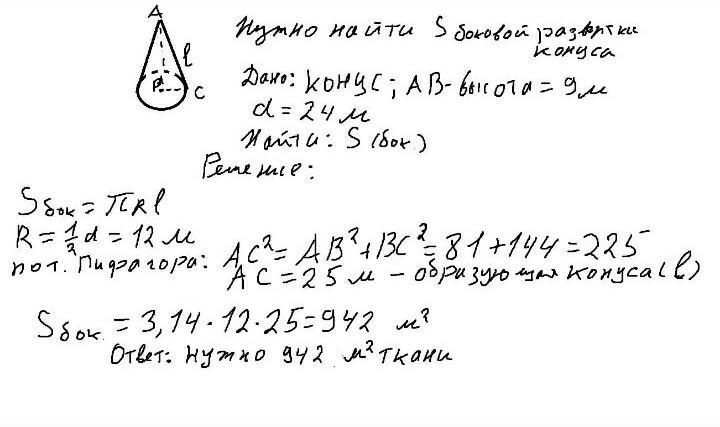 Для летнего фестиваля необходимо построить навес в виде конуса диаметром 8 м, высотой 6 м.