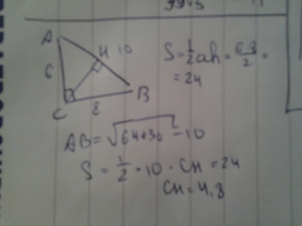 найдите в прямоугольном треугольнике(угол с=90) высоту опущенную на гипотенузу,если са=6 см,cd=8см
