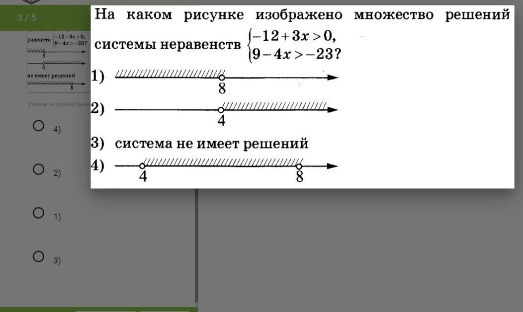 На каком рисунке изображено множество решений системы неравенств