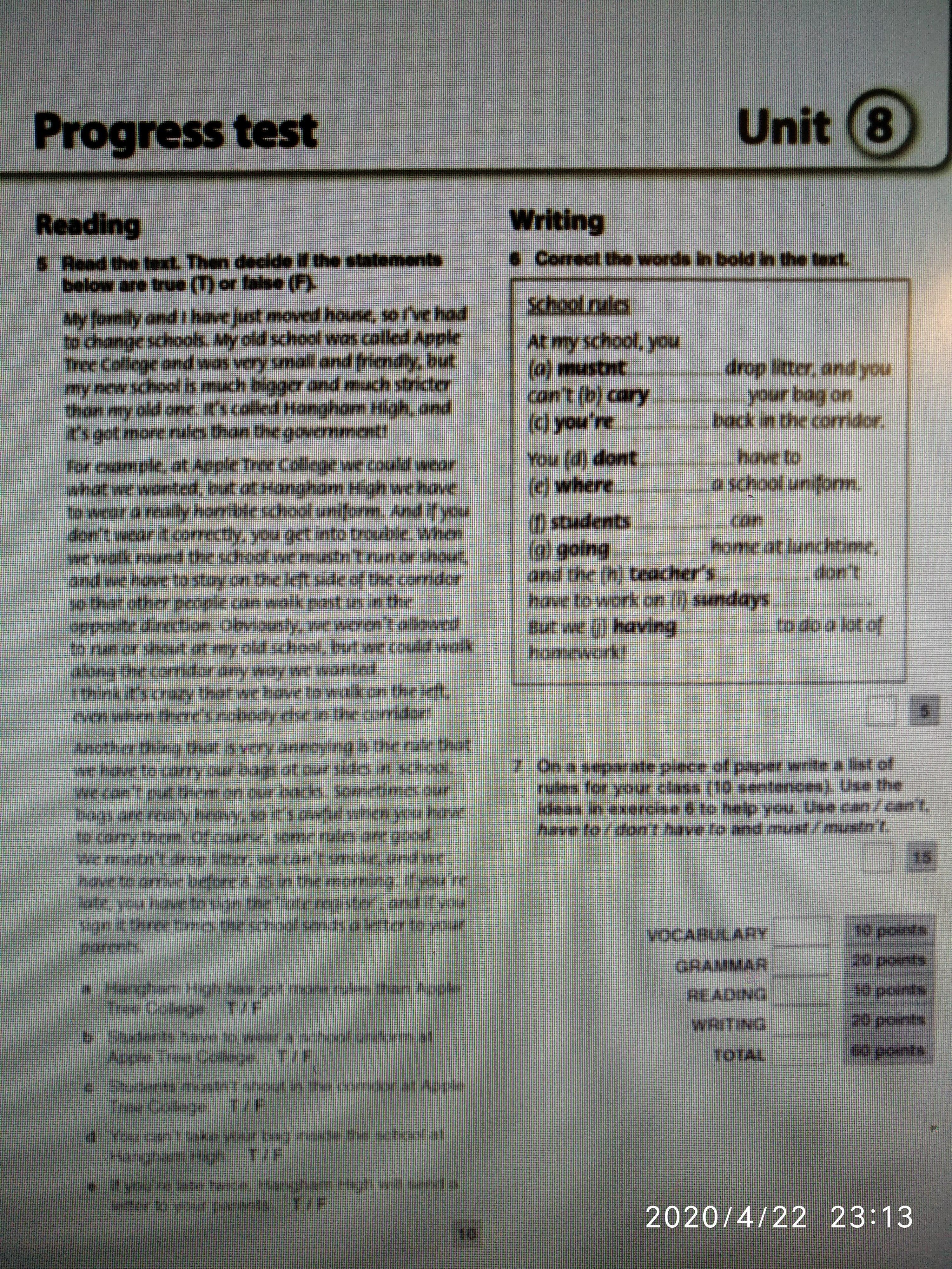At our class we can't shout and run. This is a good rule. But we have some annoying rules. For example, we can't use smartphones on the recess or we must wear the same uniform. If you late for class, the main teacher calls your parents even if they're at work! I think it's not fair. Teacher should give us a chance and not call our parents just for 1 late. At our school we have gifts for the best students. If you are good at all lessons, principal give's you some type of scholarship.