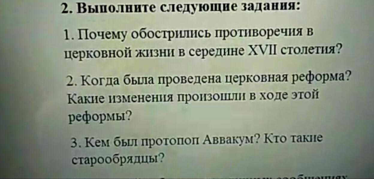 Люди разделились на старообрядцев и новообрядцев. Во главе старообрядцев был Аввакум, а во главе новообрядцев патриарх Никон.