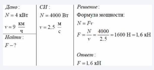 Мощность кита при плавании под водой достигает 4 кВт при скорости 9 км/ч. Определите движущую силу, развиваемую китом. Помогите пожалуйста!!!