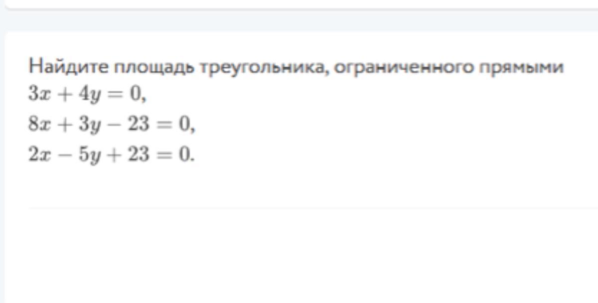 1) Находим координаты точек пересечения этих прямых- верши треугольника