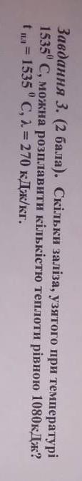 Объяснение: Кіл. теплоти = питома теплота плавлення помножити на масу. Теплота на нагрівання тратитись не буде, бо тіло взяте за температури плавлення. Пвдставляємо значення - 1080 = 270*х. х = 4 кг.