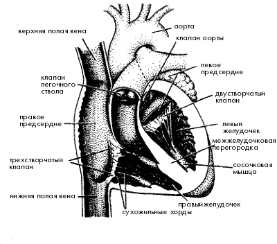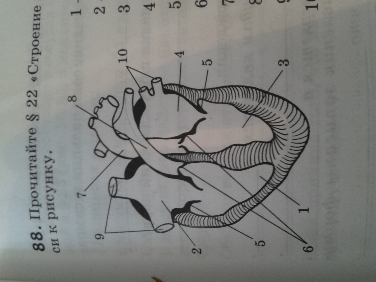 2-правое предсердие, 3 левый желудочек, 4 левое предсердие, 5 чтрёхстворчтый клапан, 8 лёгочная артерия, 7 аорта, 9 полая вехняя вена ну как-то так больше незн
