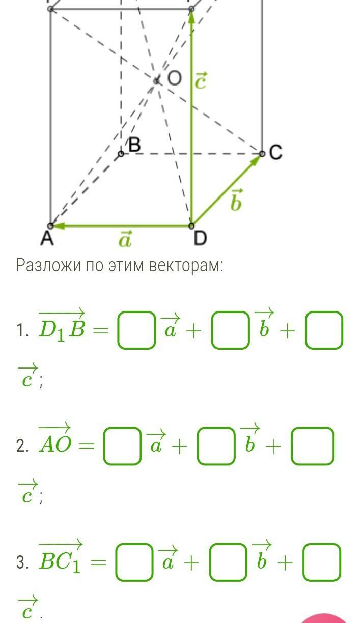 В параллелепипеде на рёбрах, выходящих из одной вершины, даны три некомпланарных вектора a→, b→ и c→ и проведены все диагонали.