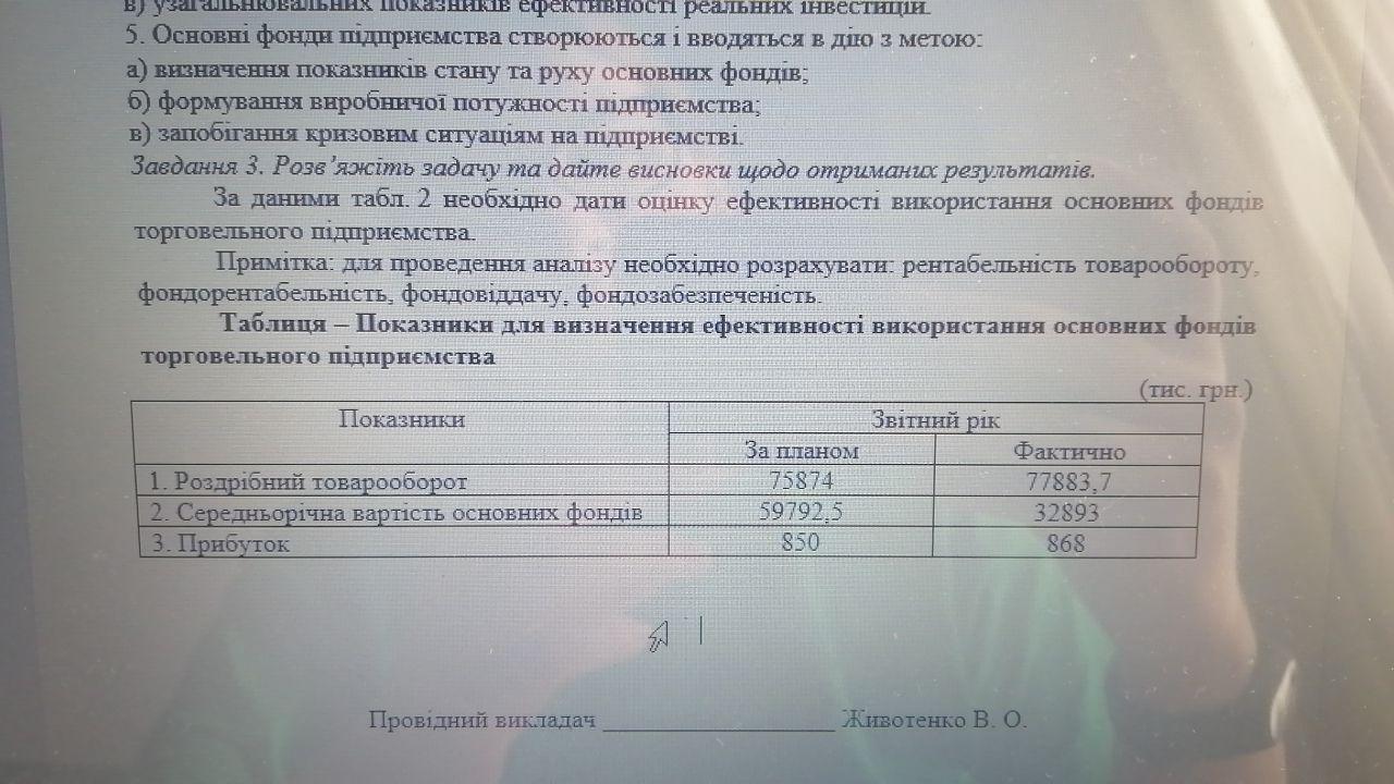 За даними табл. 2 необхідно дати оцінку ефективності використання основних фондів торговельного підприємства.