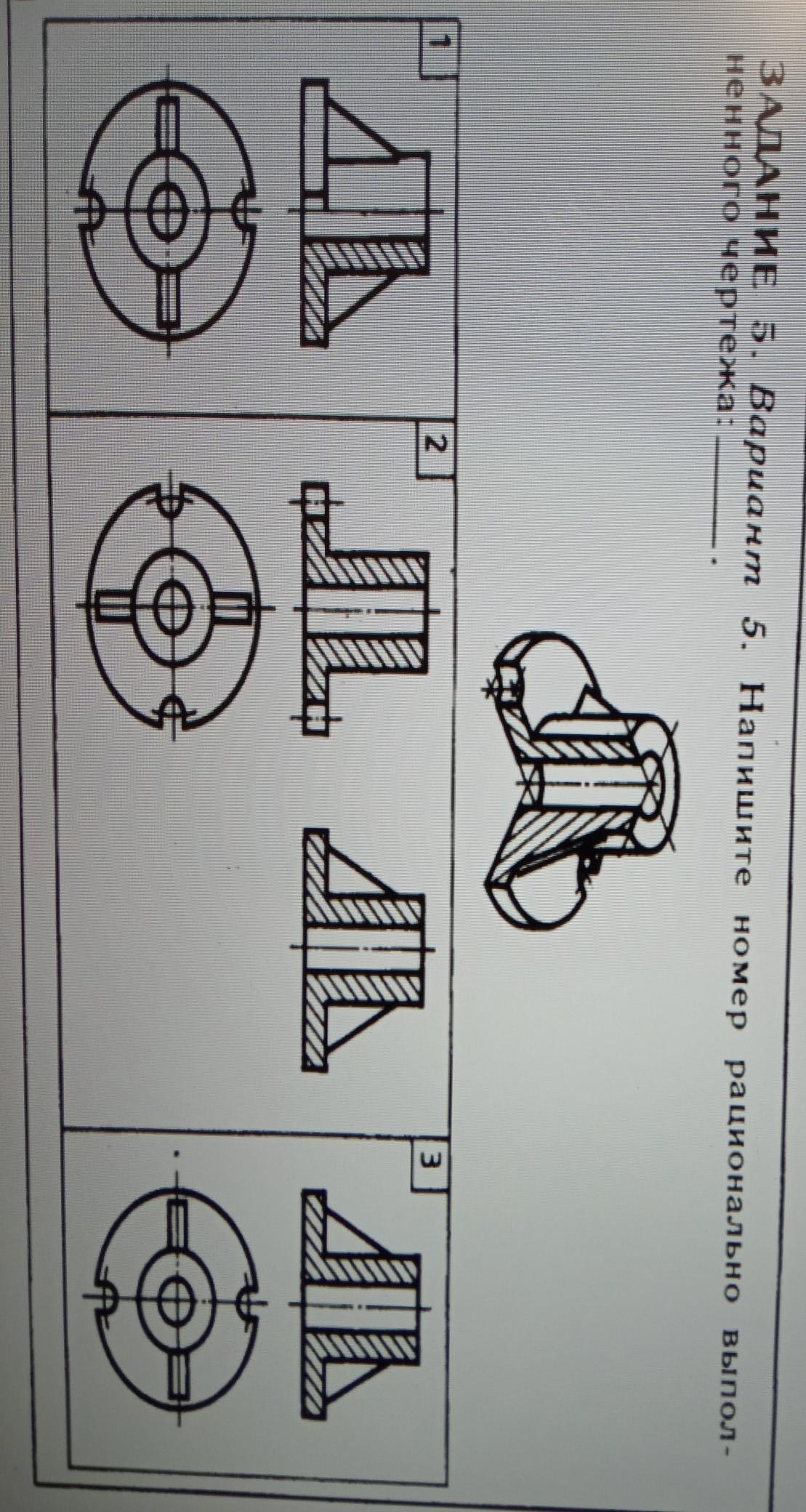 Наиболее рациональным является чертёж № 1, т. к. на нём выполнено необходимое и достаточное количество видов, выполнен половинный разрез, показывающий внутренние контуры детали.