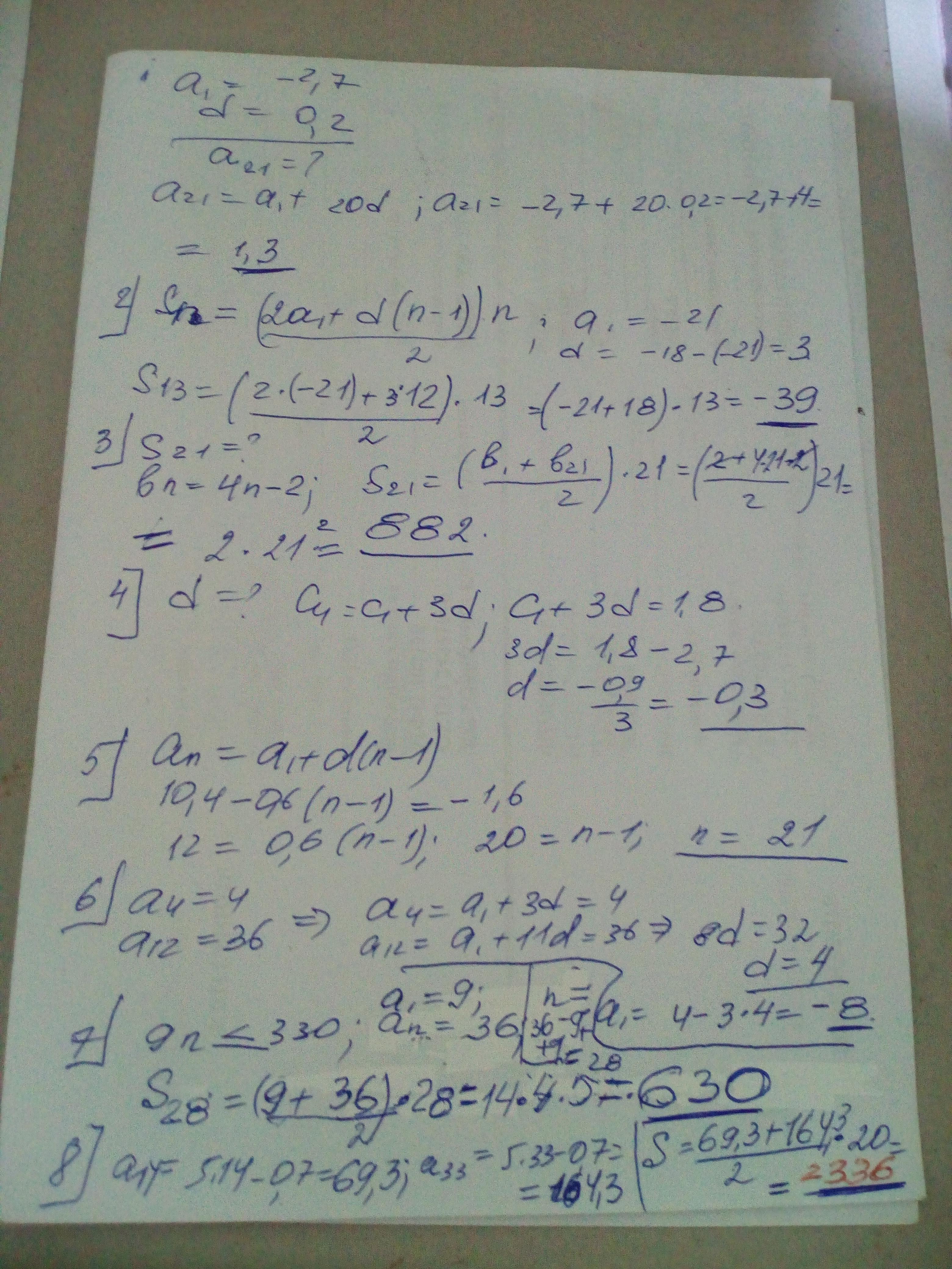 1. Найти двадцать первый член арифметической прогрессии (аn), если а1 = -2,7 и d = 0,2.