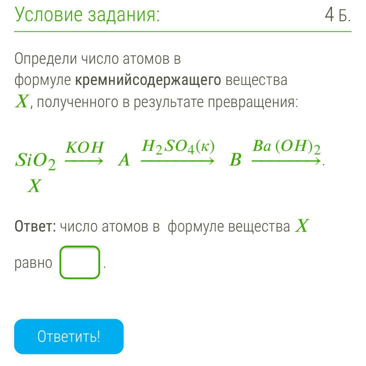 Определи число атомов в формуле кремнийсодержащего вещества , полученного в результате превращения:
