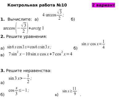 Помогите решить контрольную работу АЛГЕБРА 10 класс