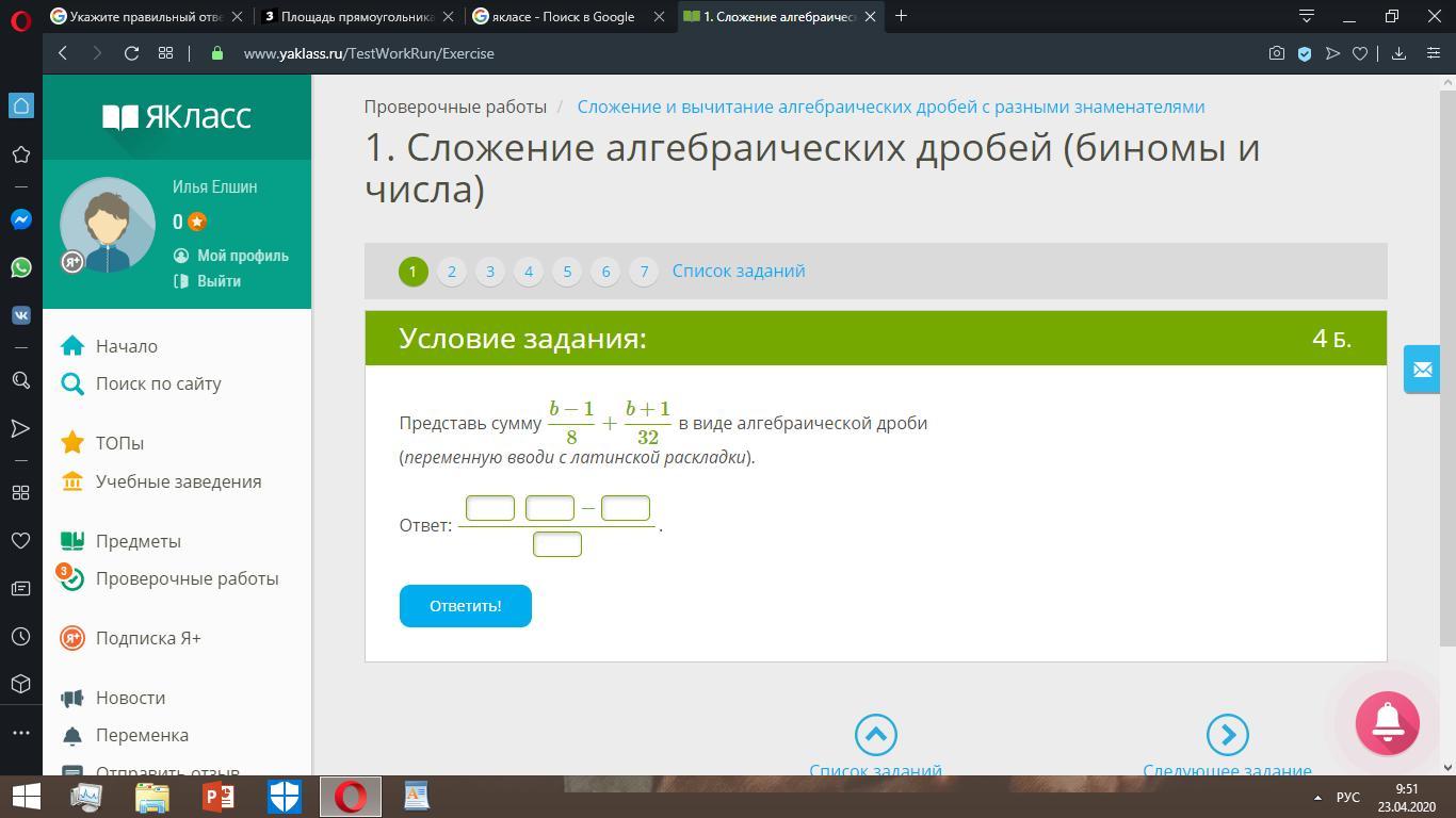 Представь сумму в виде алгебраической дроби